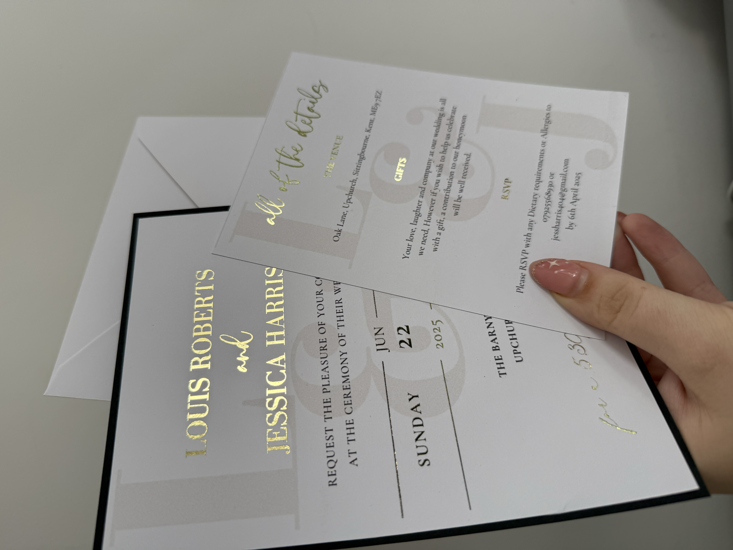 Hayley has made the whole process of creating our wedding invitations completely stress free and made my vision come to life! The invitations she created are beautiful and she made them so quickly. The value for money is great for the amazing service you receive. She even saved the day for me when I stupidly made a mistake with some info on the invites and reprinted them for me! Anyone looking for any stationary - I couldn’t recommend her enough! She has been an absolute star!